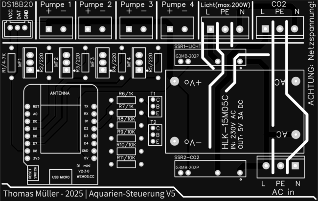 Da ich schon lange eine All-In-One-Lösung für die Steuerung meines Aquariums wollte, habe ich eine Platine entworfen und Code geschrieben. Zwar nutze ich aktuell Lampen, welche eine integrierte Steuerung haben, doch wenn man schon mal dabei ist, solch eine Platine zu entwerfen, dann integriert man auch gleich noch eine Licht-Steuerung. Die Lösung basiert auf einem…